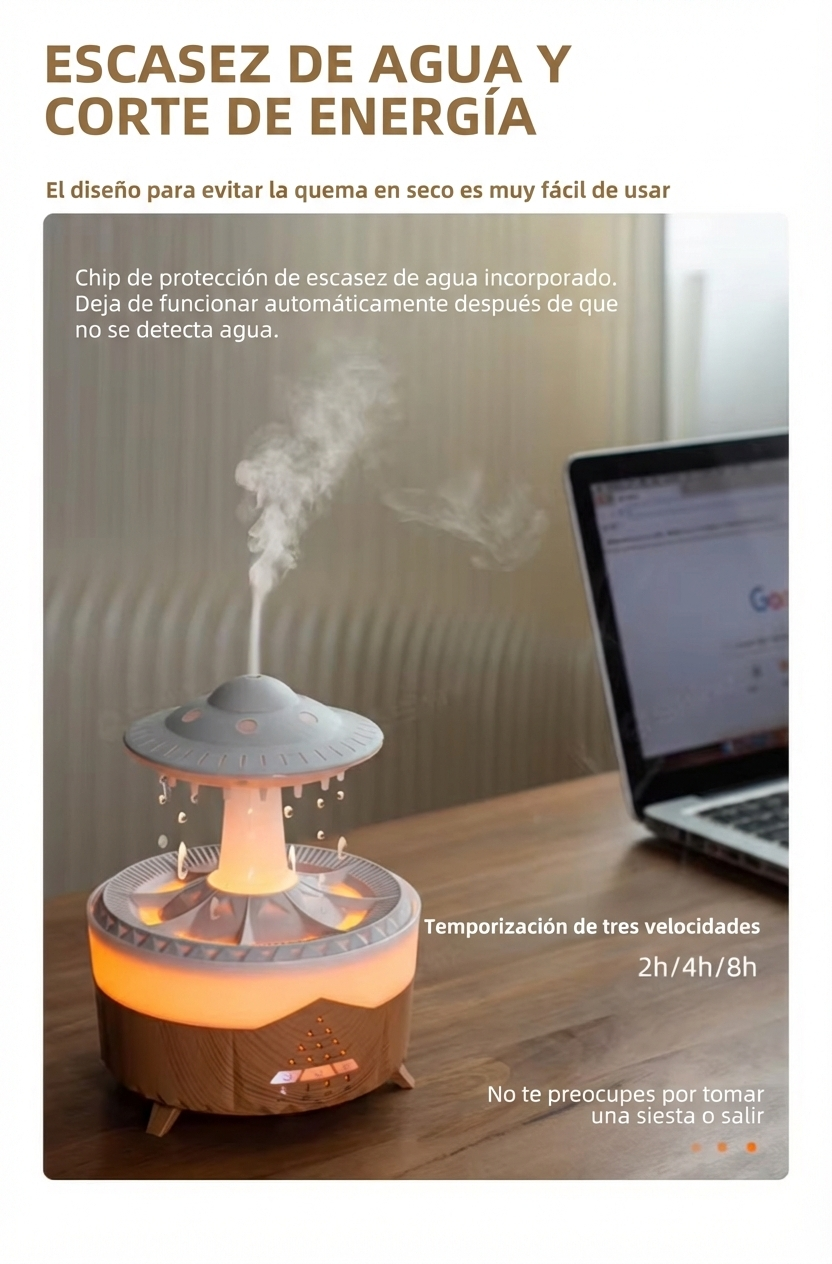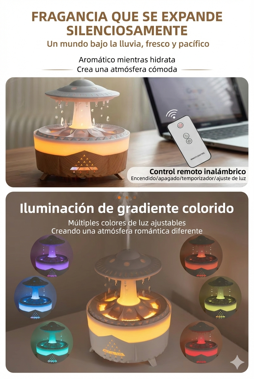 Transforma tu habitación en un oasis. El diseño de goteo simula el sonido real de la lluvia, creando ruido blanco natural ideal para dormir, reducir el estrés y meditar.